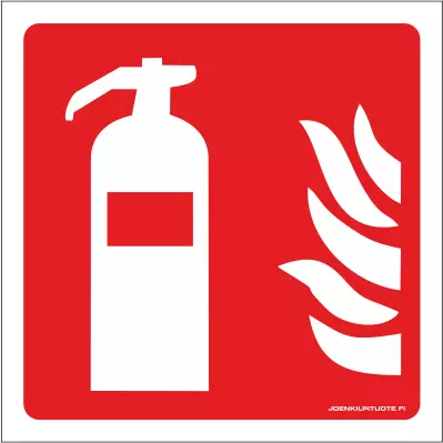 2-puoleinen palosuojelukilpi, jolla ilmoitetaan palosammuttimen sijainnista kiinteistössä.