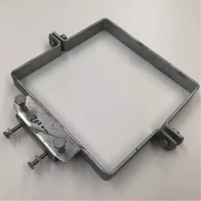 Kiinnike liikennemerkkien kiinnittäistä varten neliöputkeen, jonka halkaisija on 200mm.
